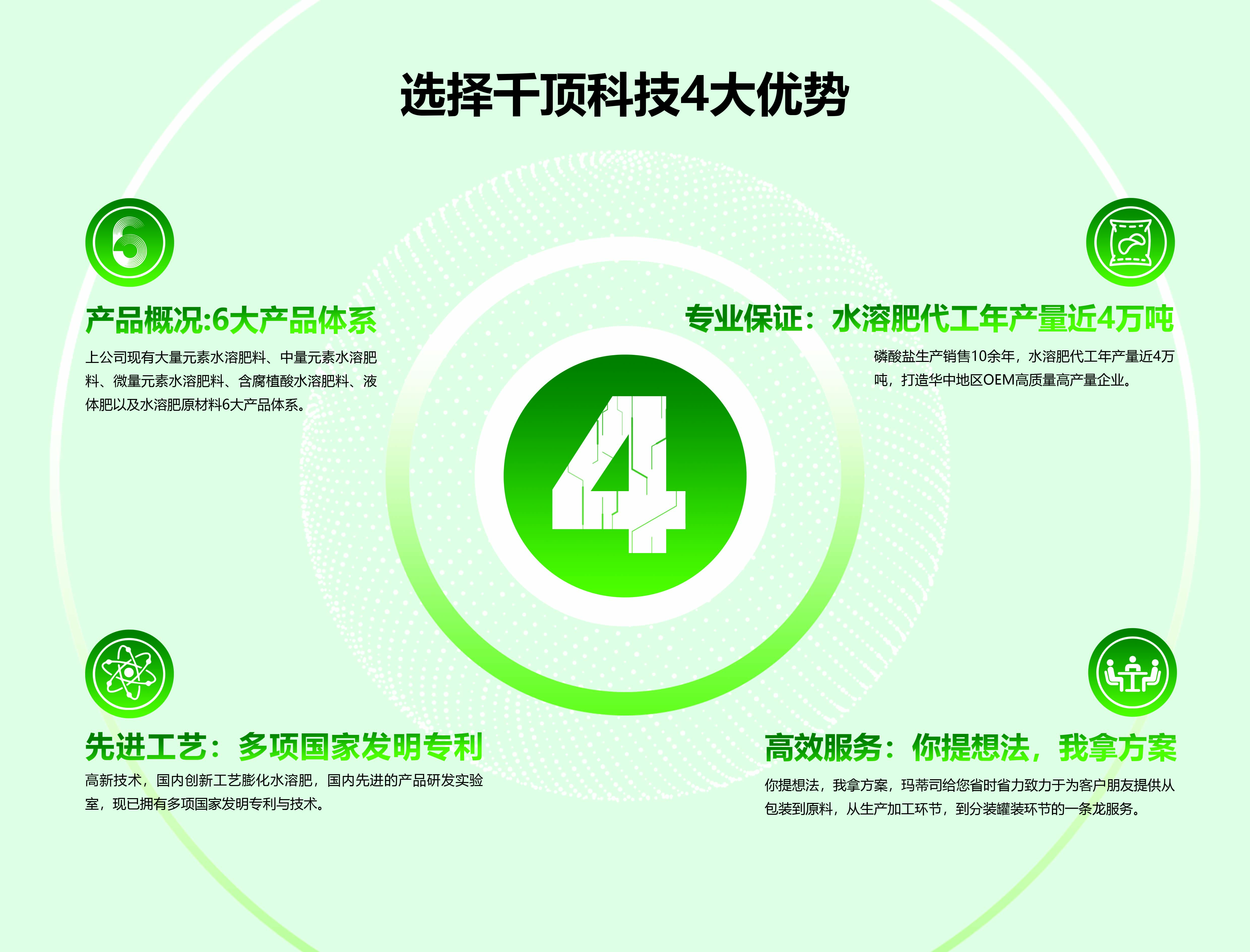 - 湖北千頂科技有限公司位于九省通衢,美麗的江城武漢,是一家專業(yè)從事研發(fā)、生產(chǎn)、磷酸鹽和高端水溶肥等一體化工企業(yè),是一家致力于打造農(nóng)業(yè)與工業(yè)攜手進(jìn)步的化工企業(yè)...